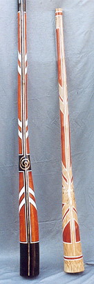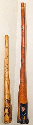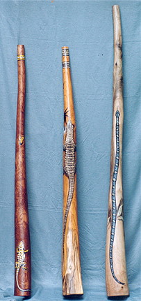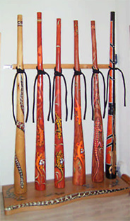 | Um einen Einblick in die Gestaltungsmöglichkeiten zu geben, sind im folgenden einige von Eddy Halats Didgeridoos zu sehen. |