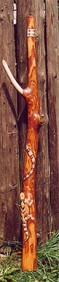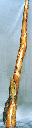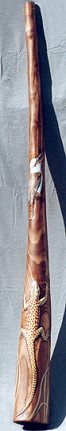 Didgeridoo gebaut für Egon Kreidl Holzart: Esche Artwork: "Doublestained" mit Schnitzerei. Mit einer Kornnatter, einem jungen Krokodil und einer "Northern Desert Horned Lizard". |