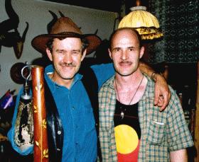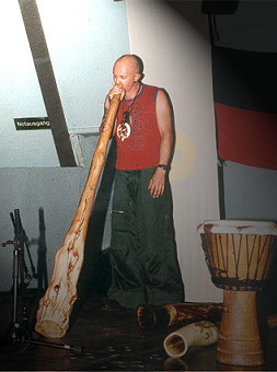 Bruce Rogers mit seinem Eddy Halat Didgeridoo. Er sagte, nachdem er es gespielt hatte: "Dies sind die besten Didgeridoos, die ich außerhalb Australiens gesehen habe.." |